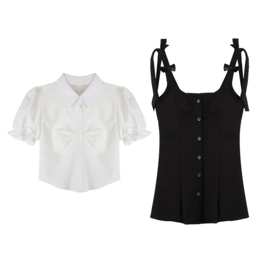 Kawaii Vest Shirt Pleated Skirt Set