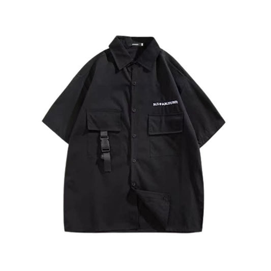 Chic Pocket Lapel Tie T-Shirt Casual Chain Cargo Shorts Pants