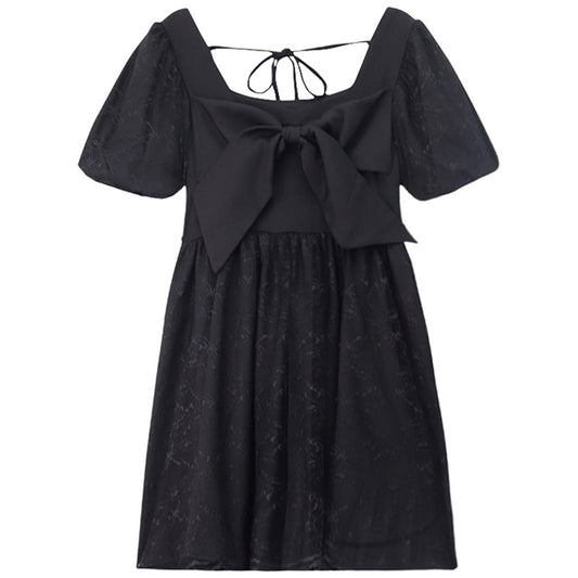 Black Lace Bow Knot Square Collar Tulle Dress SP19647