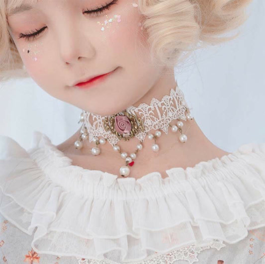 Gothic Punk Retro Lace Crystal Lolita Chocker