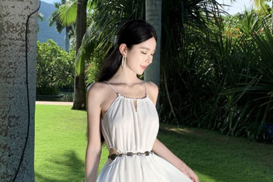 Spaghetti Strap Plain Asymmetrical A-Line Dress