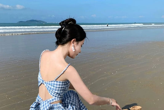 Set: Plaid Crop Camisole Top + High Waist Maxi A-Line Skirt