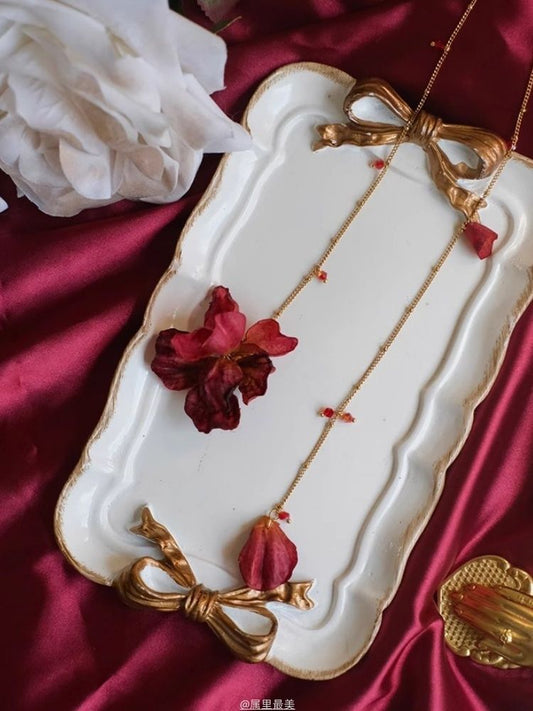 Rhinestone Bow Chandelier Floral Earring Alloy
