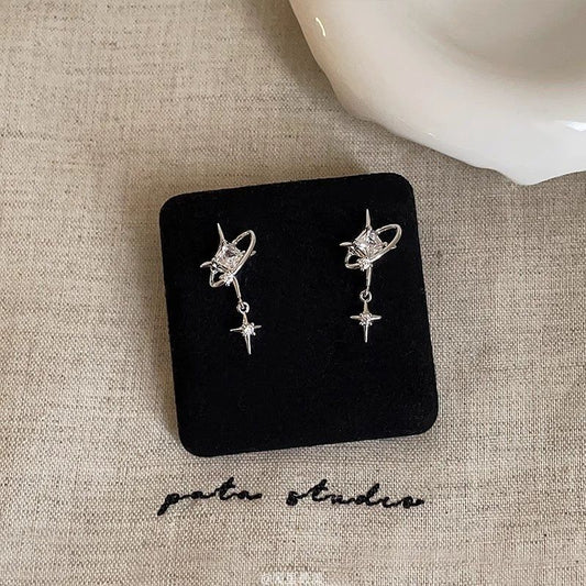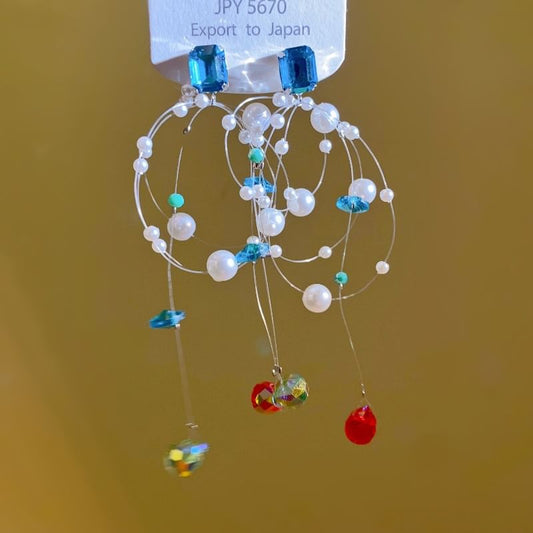 Clip Earring Asymmetrical On Drop Rhinestone Faux Pearl /