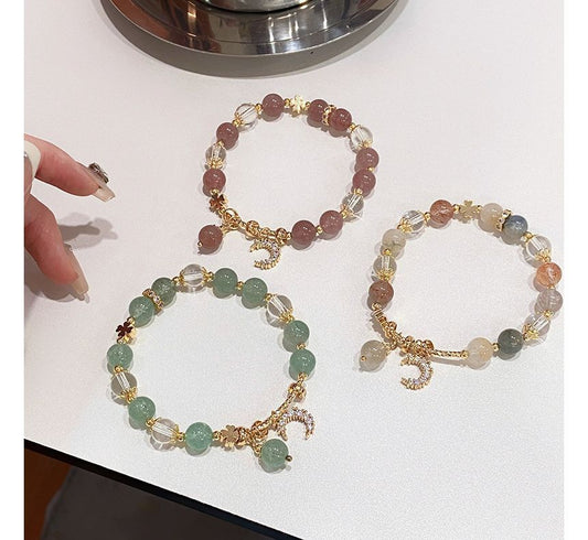 Rhinestone Moon Charm Faux Crystal Bracelet