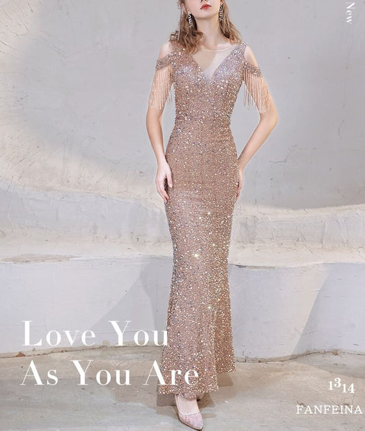 Plus Size Long-Sleeve Sweetheart-Neckline Rhinestone Midi A-Line Velvet Dress