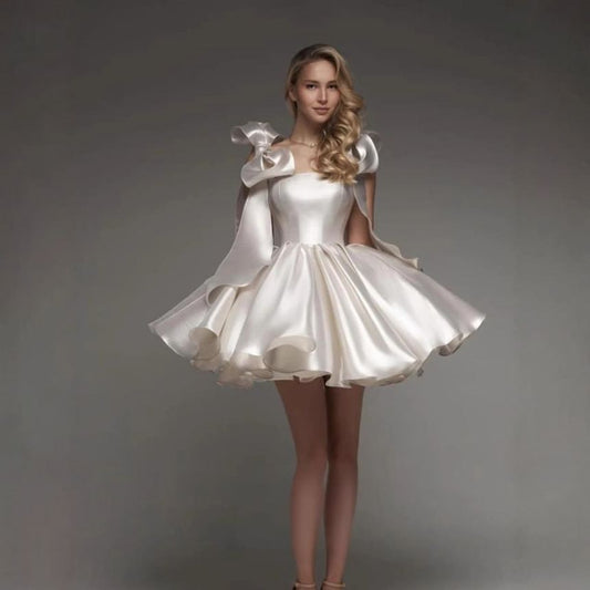 Strapless Plain Faux Pearl Bow Mini A-Line Cocktail Dress