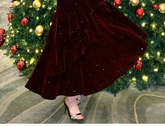 Spaghetti Strap Plain Glitter Tiered Velvet A-Line Evening Dress