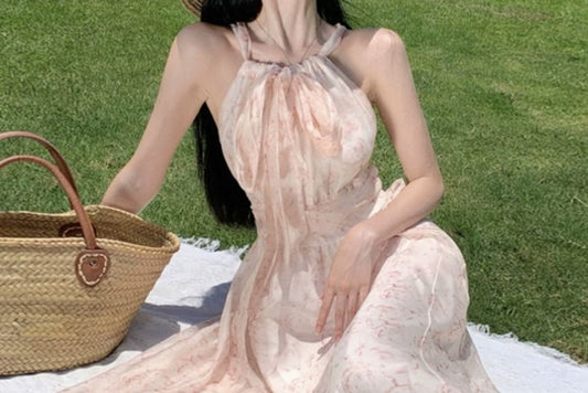 Halter Neck Floral Midi A-Line Dress