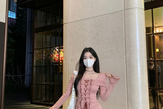 Long Sleeve Square Neck Lace Up Ruffle Mock Two Piece A-Line Dress (Various Designs)