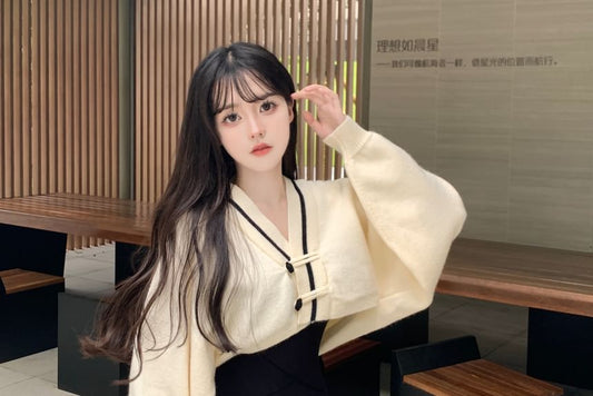 Spaghetti Strap Plain Maxi A-Line Dress / V-Neck Contrast Trim Crop Cardigan / Set