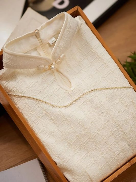 Puff-Sleeve Stand Collar Frog Buttoned Mini A-Line Dress