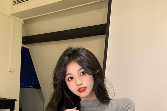 Long-Sleeve Mock Neck Plain Tee / Spaghetti Strap V-Neck Faux Leather Mini A-Line Dress