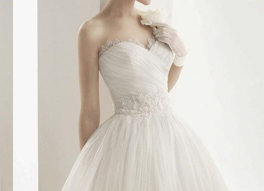 Plain Ruched Lace Panel Mesh A-Line Tube Wedding Dress