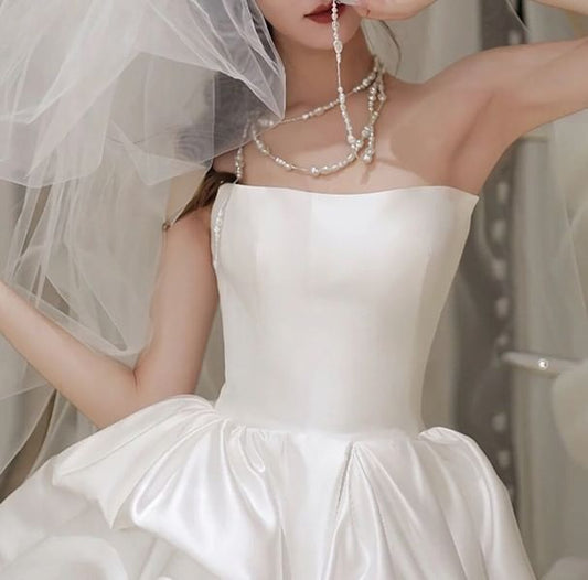 Spaghetti Strap Plain Bubble Hem High Low A-Line Short Wedding Dress