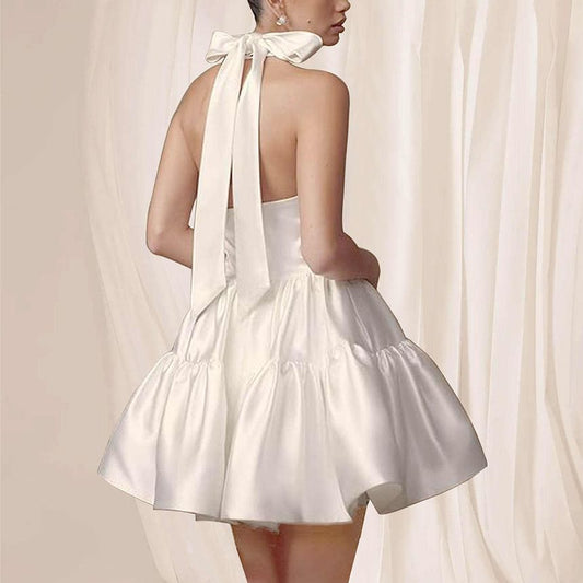 Sleeveless Halter Plain Open Back Tiered Mini A-Line Cocktail Dress