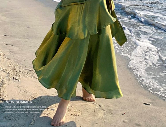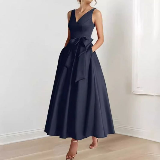 Sleeveless V-Neck Plain Bow Midi A-Line Evening Dress