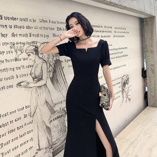 Short-Sleeve Plain Maxi Sheath Evening Dress
