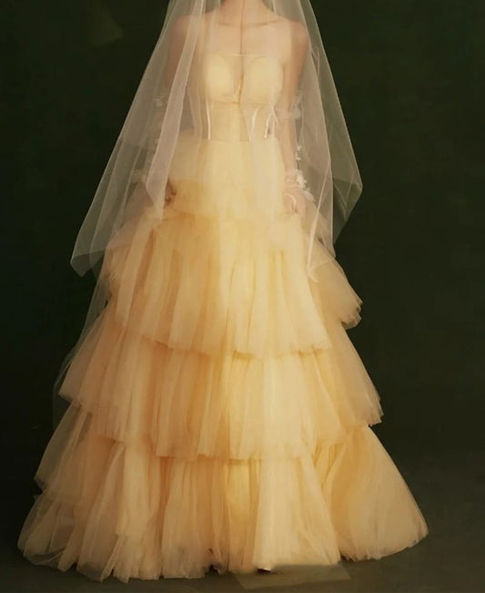 Strapless A-Line Layered Evening Dress