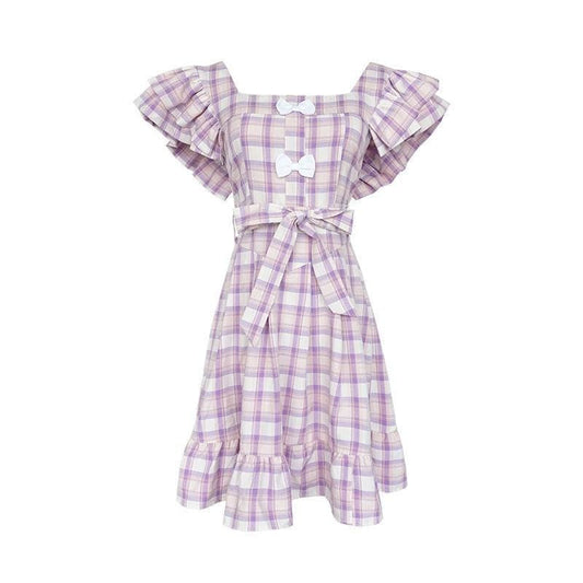 Dolly Kawaii Princess Jfashion Purple Plaid Ruffle Dress