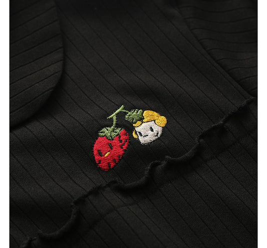 Short-Sleeve Collar Embroidered Lettuce Edge A-Line Dress kk15