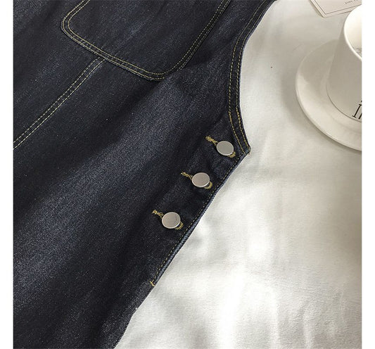 Square Neck Plain Slit Denim Midi Jumper Dress kk13