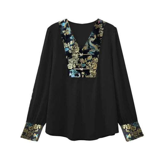 Vintage Dragon Buckle Long Sleeve V-neck Shirt