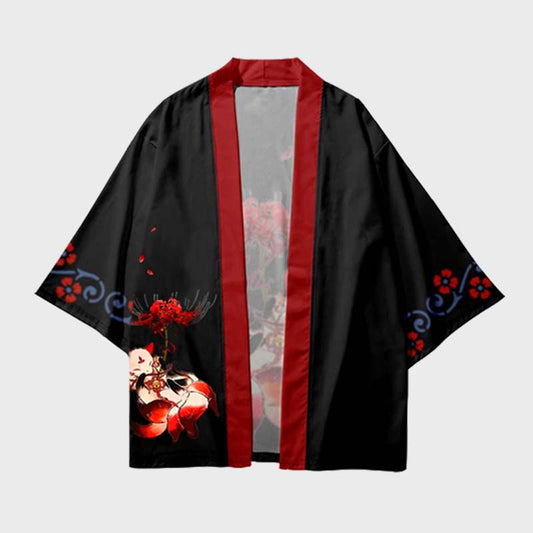 Fox Flower Red Print Cardigan Kimono