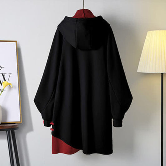Folding Fan Buckle Vintage Hooded Sweatshirt Dress