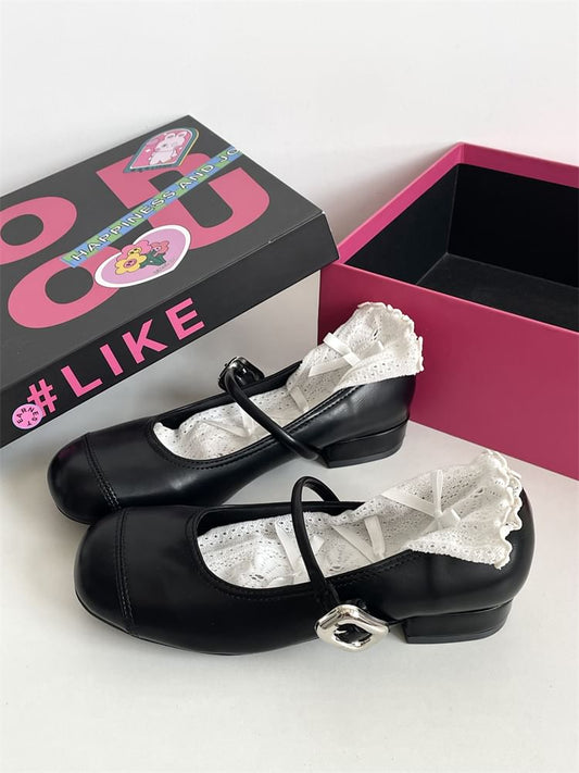 Chunky Heel Ankle Strap Bow Accent Heart Buckled Mary Jane Pumps