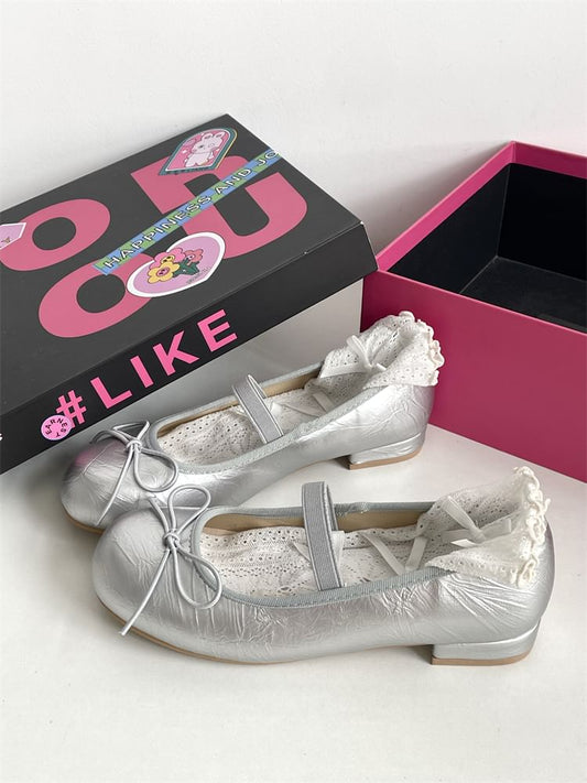 Plain Bow Accent Faux Leather Mary Jane Flats