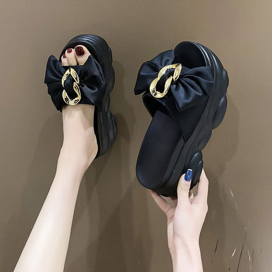 Rhinestone Toe Loop Chunky Heel Slide Sandals