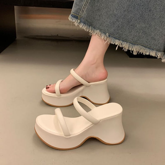 Sandals Platform Loop Heart Rhinestone Toe Slide