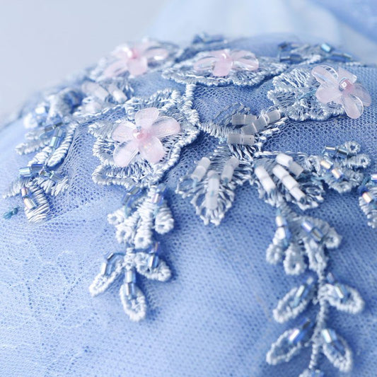 Flower Embroidered Sleeveless Evening Gown