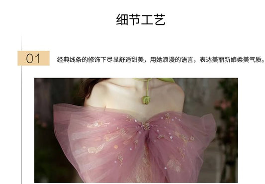 Beaded Off-Shoulder Mesh Wedding Gown Corset Sheath