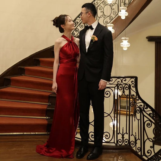 Evening Ruched Sheath Satin Gown Plain Halter