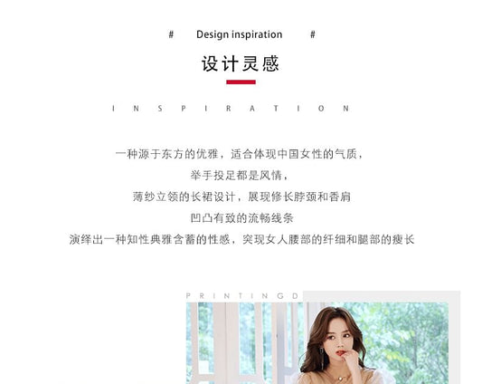 Mesh Gown Butterfly Collar Patterned Sleeveless Evening Mandarin A-Line Panel