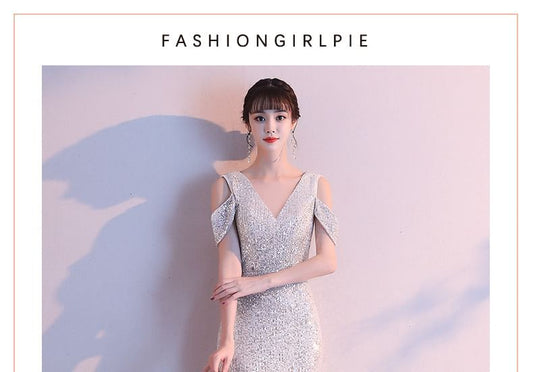 Evening Cold-Shoulder Trumpet Gown Sequin Beaded