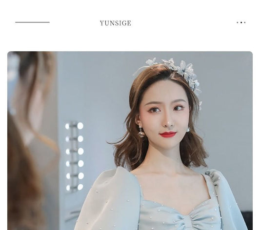 Faux Puff-Sleeve Evening Gown Plain A-Line Pearl