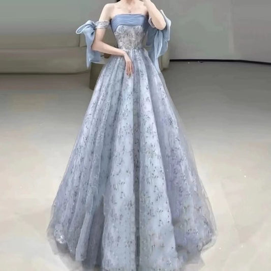 Rhinestone Off-Shoulder Ball Two A-Line Bow Tone Gown
