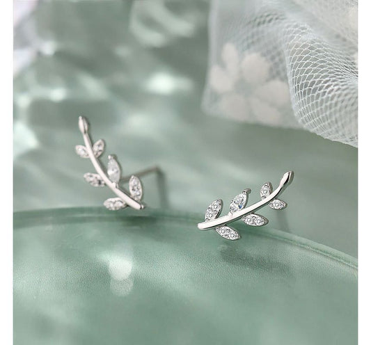 Leaf Rhinestone Sterling Silver Crawler Earring