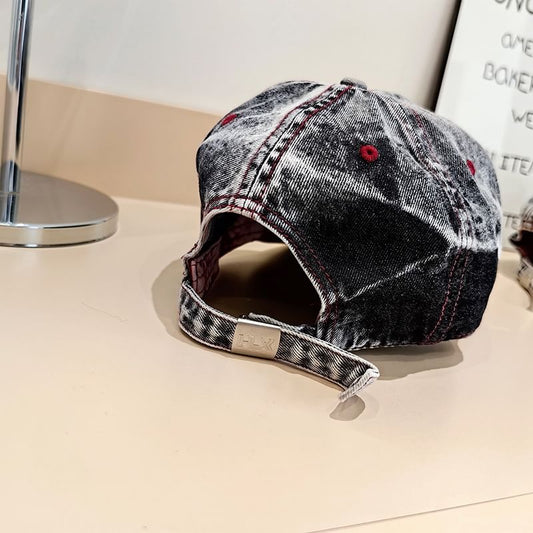 Lettering Distressed Washed Denim Baseball Cap