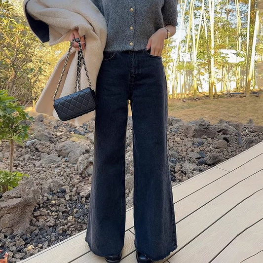 High Rise Fray Wide Leg Jeans