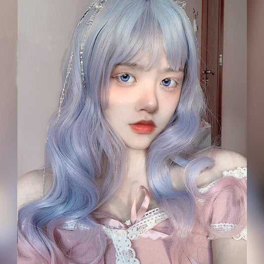 Kawaii 3 Colors eGirl Lolita Purple White Blue Gradient Big Wavy Long Curly Wig MM1664