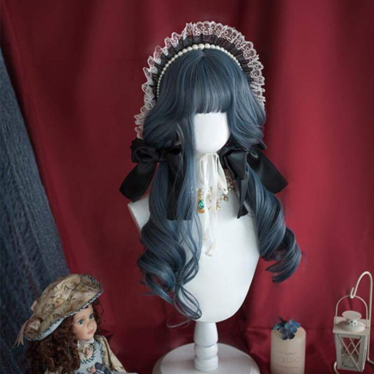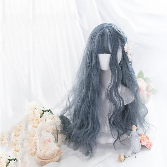 Lolita Blue Gray Wavy Long Curly Wig MK15443