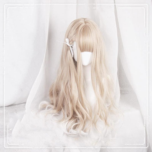 Kawaii Cute Platinum Gradient Pink Long Curly Lolita Wig MK16753