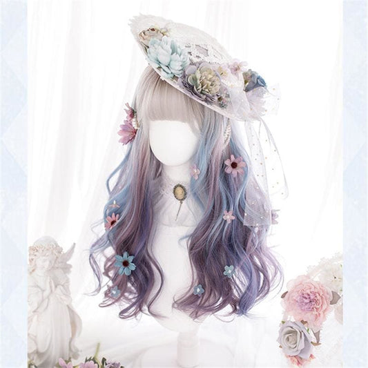 Lolita Pink Blue Gradient Long Curly Wig MK15518