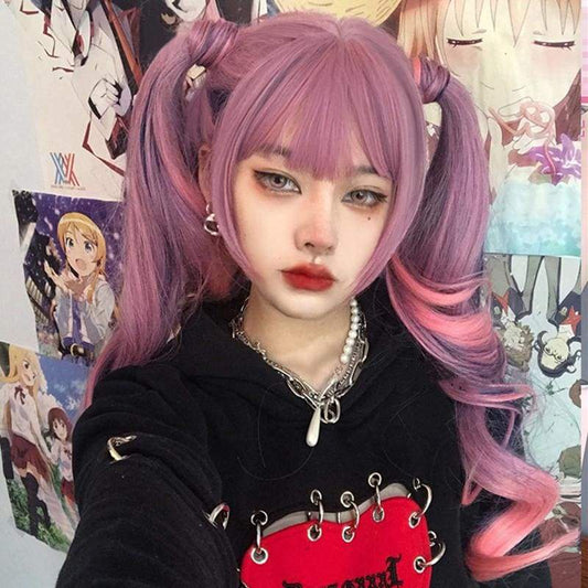Harajuku Cute Purple Dyed Black Gradient Lolita Long Curly Hair MK15869