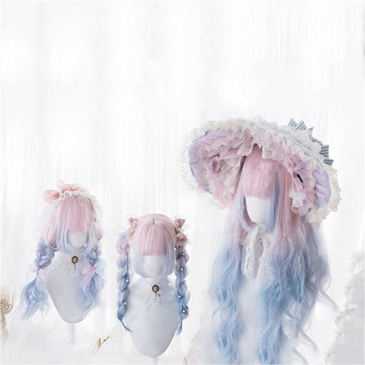 Lolita Pink Blue Gradient Long Curly Wig MK15369
