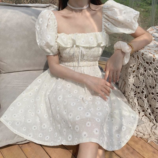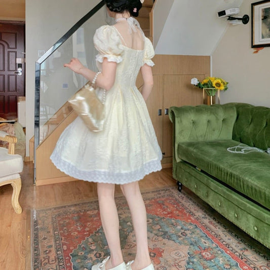 Lace Chiffon Fairy Dress Casual Puff Sleeve Cute Summer Dress MK16912